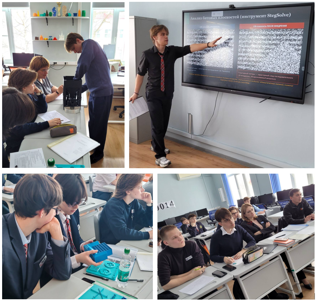 В формате конференции состоялась защита исследовательских проектов учащимися 10А "IT-класса". Ребята представили результаты своей работы в области информатики и математики по таким направлениям, как робототехника, нейросети, криптография, разработка игр, 3D-моделирование и другим Оценивало проекты компетентное жюри, в состав которого вошли: