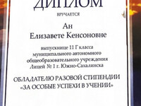 Диплом обладателя стипендии "За особые успехи в учении" Ан (2025)