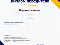Диплом победителя 1 тура олимпиады Учи.ру (2026)