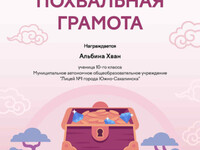 Грамота призера 1 тура олимпиады Учи.ру (2026)