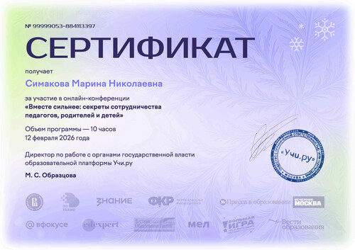 Главная » Фотоальбом » Симакова М.Н. » Сертификаты » Конференция Учи.ру (2026)