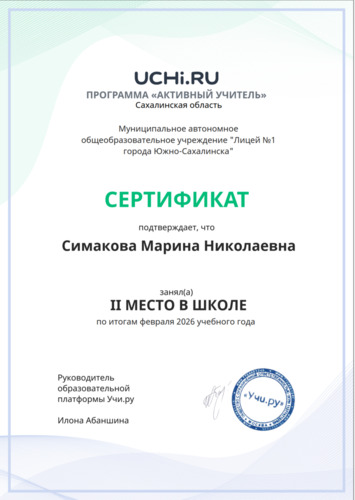 Главная » Фотоальбом » Симакова М.Н. » Сертификаты » Сертификат Учи.ру (2026)
